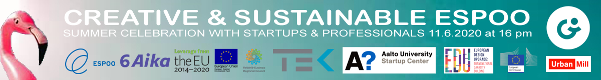 The event is jointly organized by City of Espoo, 6Aika: Ecosystems of Growth-project, Business Espoo, Enter Espoo, Aalto University, Aalto Networking Platform, Aalto Startup Center, Aalto EIT Services, Aalto Design Factory, VTT Technical Research Centre of Finland, Smart Otaniemi, Academic Engineers and Architects in Finland TEK, Urban Mill Innovation Platform and CRESCENDO@CC project. Producer: Urban Mill Innovation Platform, Otaniemi, Betonimiehenkuja 3E, 02150 Espoo, Finland.